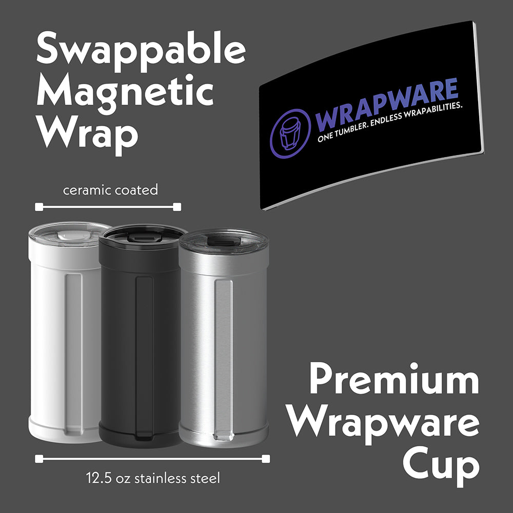 Designs are printed on durable eco-friendly magnetic wraps that swap easily. Mix and match designs across any Wrapware Tumbler